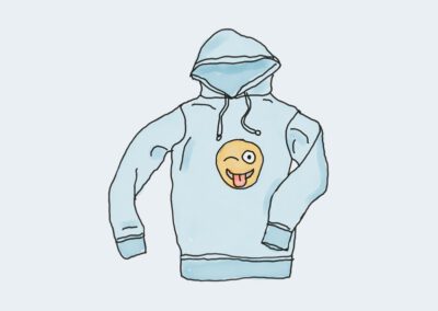 Nach dem Druck der Aufkleber werden sie zugeschnitten und die überflüssige, umliegende Folie entfernt. Das aufgebrachte, flüssige Kunstharz läuft bis an die Schnittkante und bildet durch Oberflächenspannung auf der Fläche des Aufklebers eine Kuppel. Ganz ähnlich wie bei einem Regentropfen.